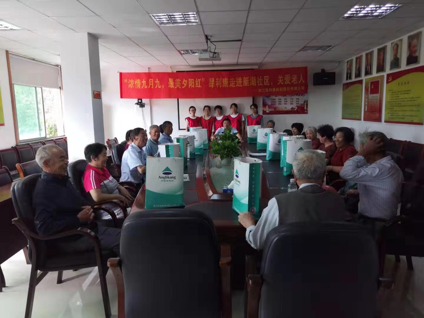 吳繼耀同志代表浙江昂利康制藥股份有限公司出席本次活動,現(xiàn)場書寫“老吾老以及人之老”字樣的書法作品,贈于艇湖社區(qū),體現(xiàn)浙江昂利康制藥股份有限公司對社會老人的關愛之情。最后,艇湖社區(qū)黨支部書記李維正同志對本次參加活動的老人做了介紹,并提出“浙江昂利康制藥股份有限公司開展的本次活動,體現(xiàn)了一個企業(yè)對老人的關愛,同時我們老年同志也要支持他們企業(yè)的發(fā)展建設,讓他們安心的生產(chǎn)和經(jīng)營,創(chuàng)造更多的就業(yè)崗位和財富,來回報社會”。本次參加活動的老人有:原村退休老干部、部隊退役老干部、艇湖社區(qū)最年長的老人、普通老人。浙江昂利康制藥股份有限公司為本次參加活動的老人代表們分發(fā)節(jié)日的紀念禮品。因崔老書記年事已高,未能參加本次活動,浙江昂利康制藥股份有限公司志愿者小分隊在社區(qū)工作人員的帶領下,帶著紀念品登門拜訪了崔老書記,向崔老書記送去了浙江昂利康制藥股份有限公司的關心和慰問。老人們一張張的笑臉就是對本次活動最好的肯定。